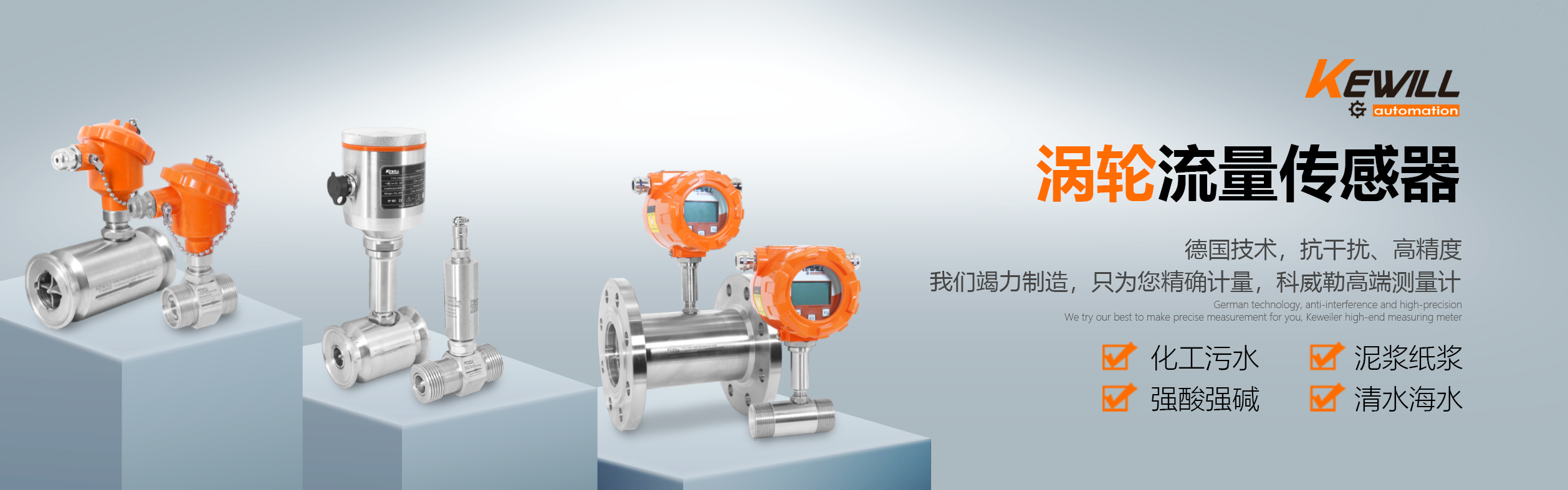 科威勒(中國)自動化有限公司是KewillAutomationGmbH(德國科威勒自動化公司)的全資子公司,主要銷售產(chǎn)品有:流量計,電磁流量計,進(jìn)口流量計,進(jìn)口電磁流量計,KEWILL(科威勒),溫度傳感器,流量傳感器,壓力傳感器,液位開關(guān),壓力開關(guān),物位開關(guān),溫度開關(guān),流量開關(guān),液位計等,銷售熱線:021-54430662. 德國科威勒 (KEWILL)成立于1975年,位于德國 Flughafenstr. 1-4 2325 Hamburg,主要生產(chǎn)流量開關(guān)、流量監(jiān)控器、流量計,是當(dāng)前世界上較大的小口徑流量監(jiān)控器和開關(guān)生產(chǎn)工廠。1993年通過了ISO9001國際認(rèn) 證,1999年發(fā)明了熱傳溫差技術(shù)并成功運(yùn)用到流量檢測領(lǐng)域并已成為行業(yè)標(biāo)準(zhǔn)。 科威勒(KEWILL)公司擁有嚴(yán)格的質(zhì)檢管理體系和完善的售后服務(wù)體系,高品質(zhì)和良好的聲譽(yù)奠定了其在行業(yè)內(nèi)世界先進(jìn)地位。